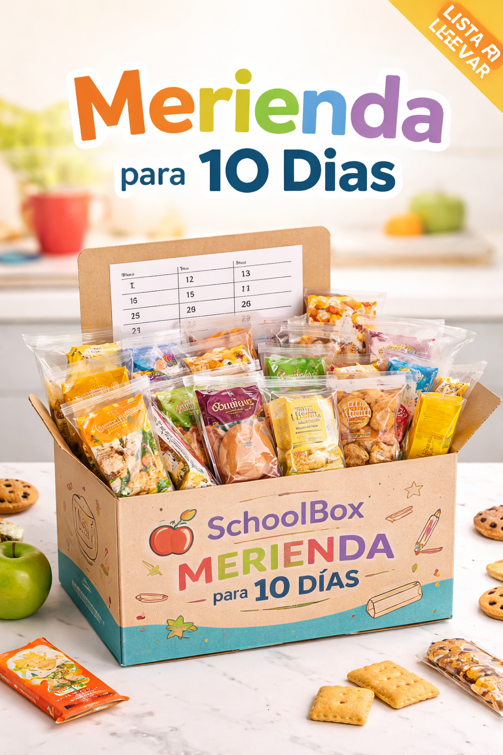 SchoolBox Merienda incluye 10 porciones individuales, listas para llevar, variadas y organizadas por día. Menos tiempo pensando, más tranquilidad cada mañana. Ver más detalles